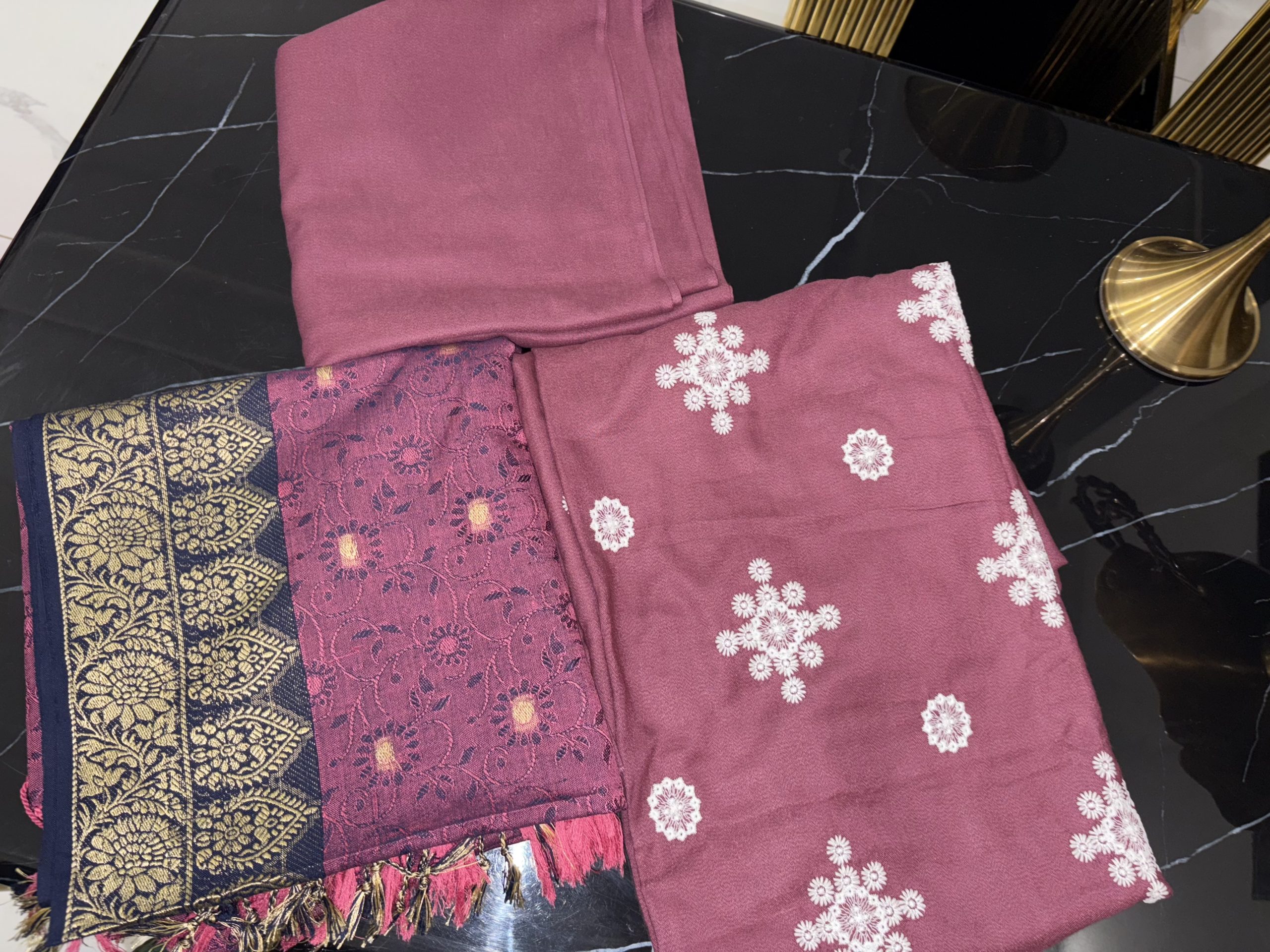 • Shawl: A warm and stylish jacquard shawl completes the ensemble, offering both comfort and a touch of luxury.
